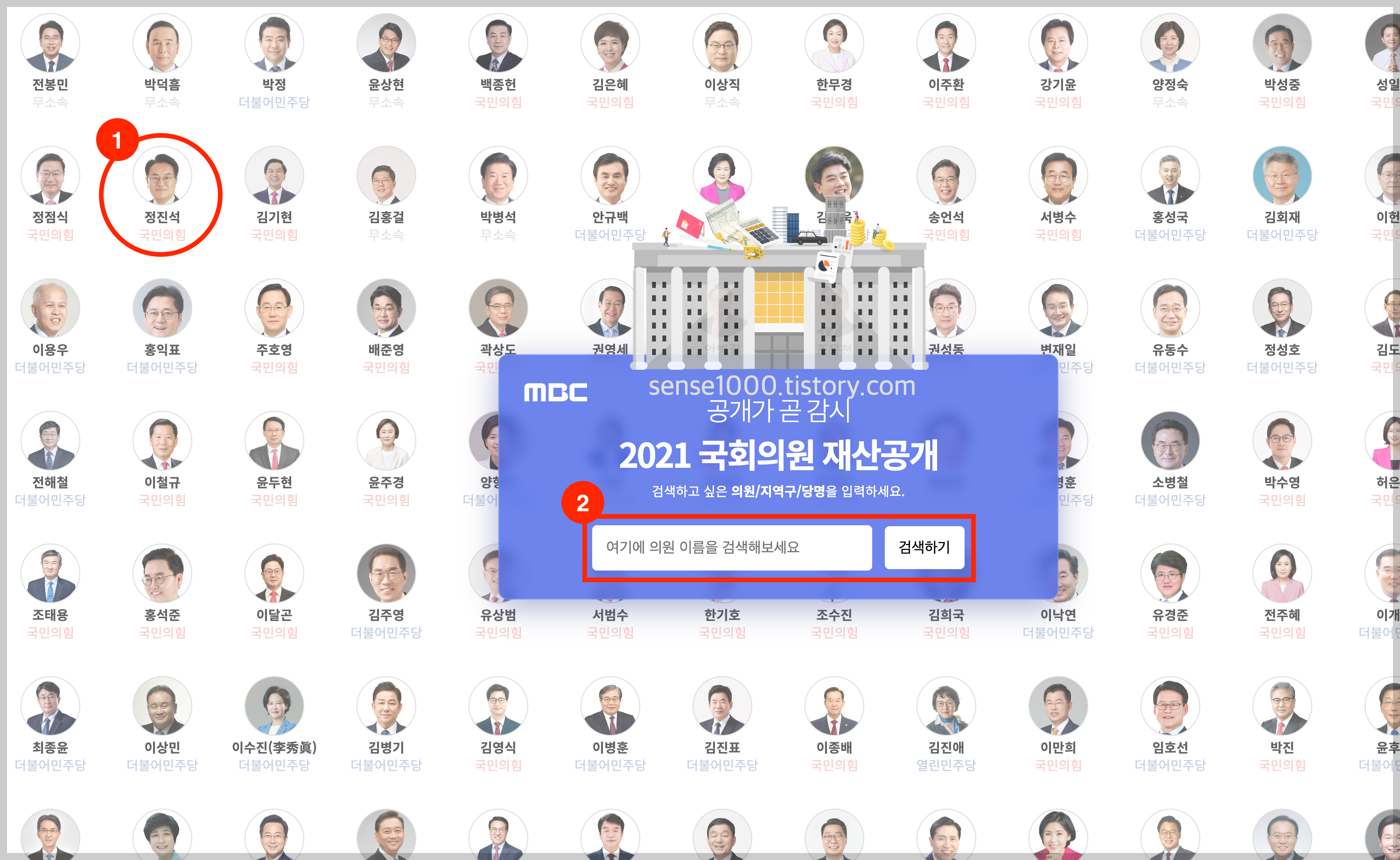 아래와 같이 <2021 국회의원 재산공개> 홈페이지(property.assembly-mbc.com)가 나옵니다.