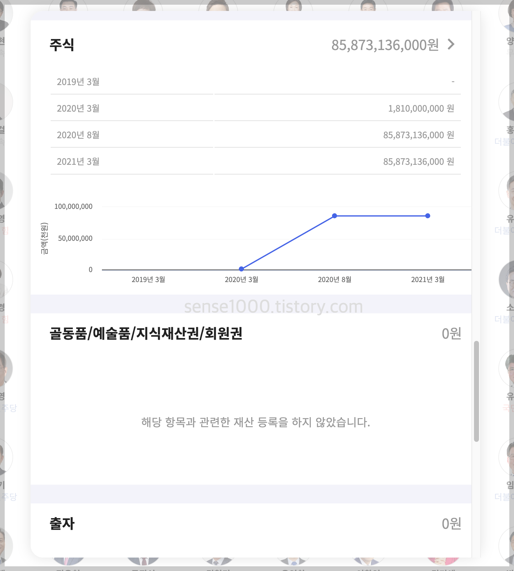 허나 뉴스타파의 재산정보의 상세내역은 정기 후원회원에게 제공됩니다. 더 세부적인 재산내역을 확인하려면 정기 후원회원으로 가입하셔야 합니다. 평소에 정치에 관심이 많고, 뉴스타파의 탐사보도를 응원하길 원하시는 분들은 이용하시면 좋을 서비스 같습니다.