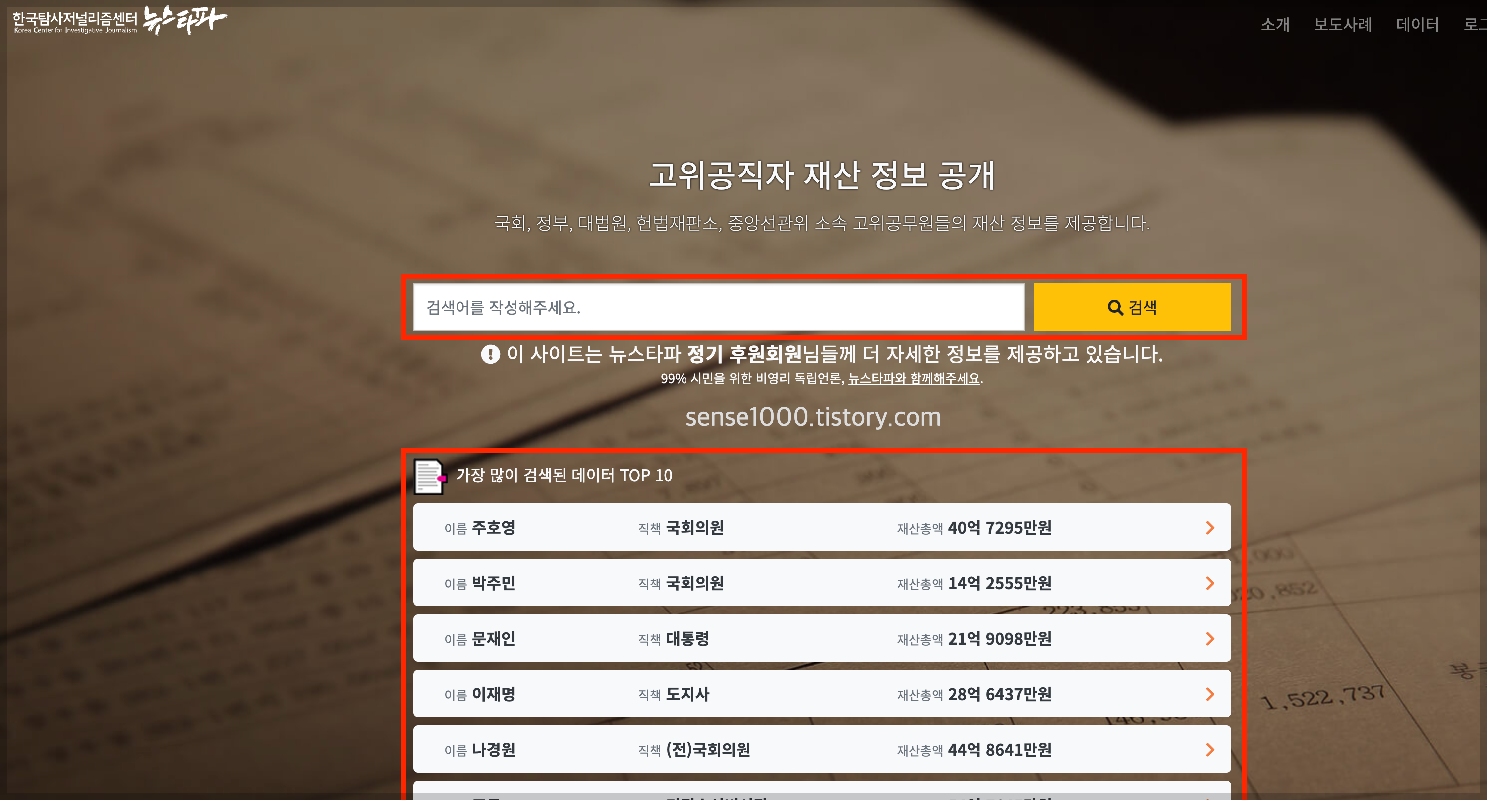 2. 뉴스타파 고위공직자 재산 공개 (유료)