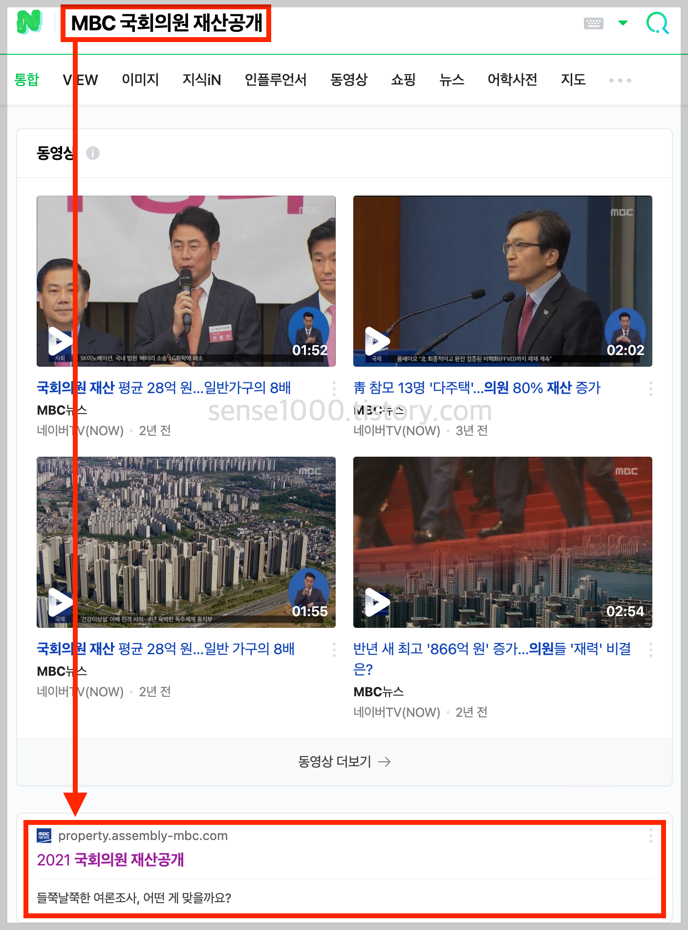 1-1. 네이버에 <mbc 국회의원 재산공개>를 검색하거나 하단 링크를 통해 들어갑니다.